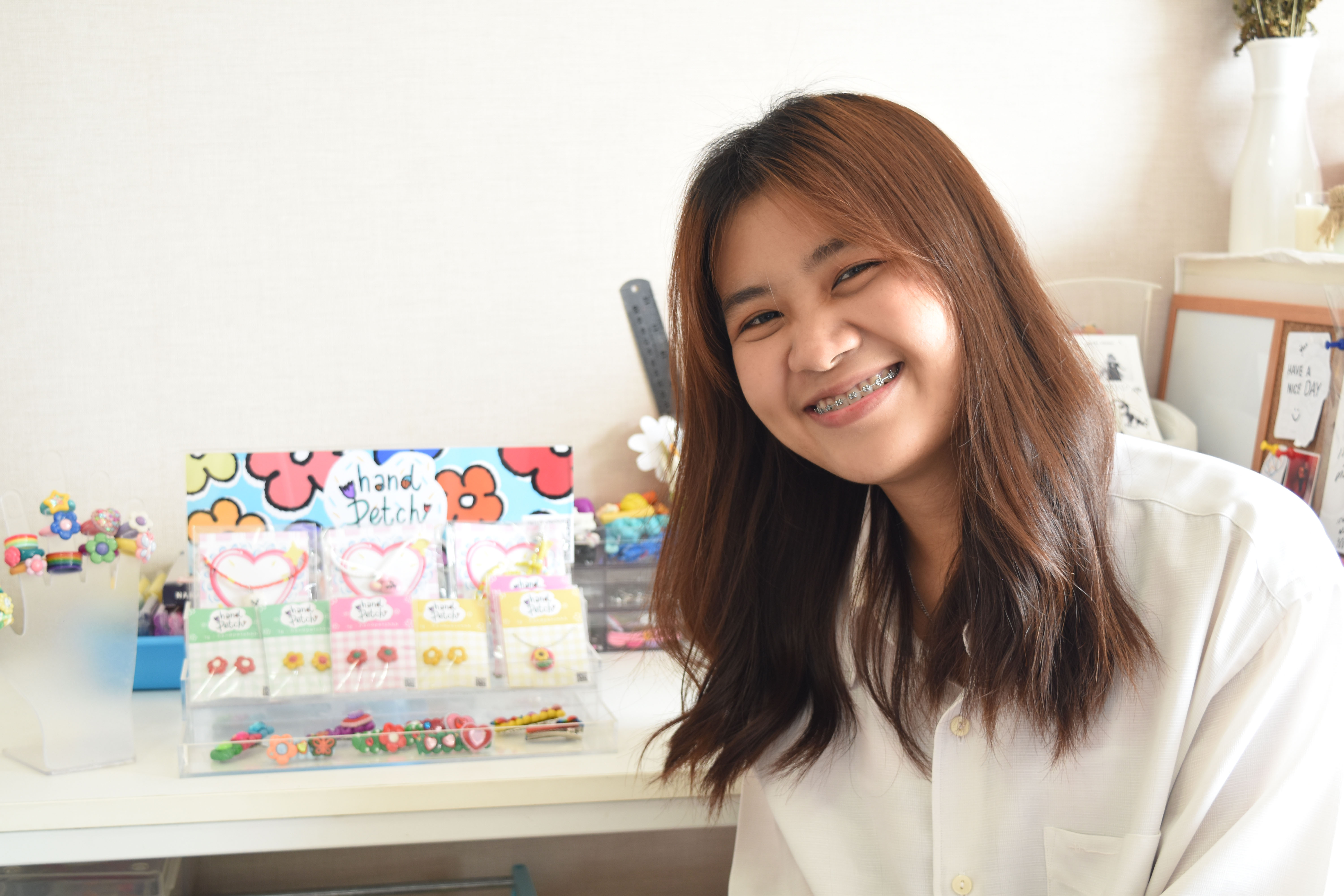 I am a freelance designer specialising in creating graphics and props for film production. These days I make jewellery and promotional content for my online store. I also run booths selling my handmade jewellery.