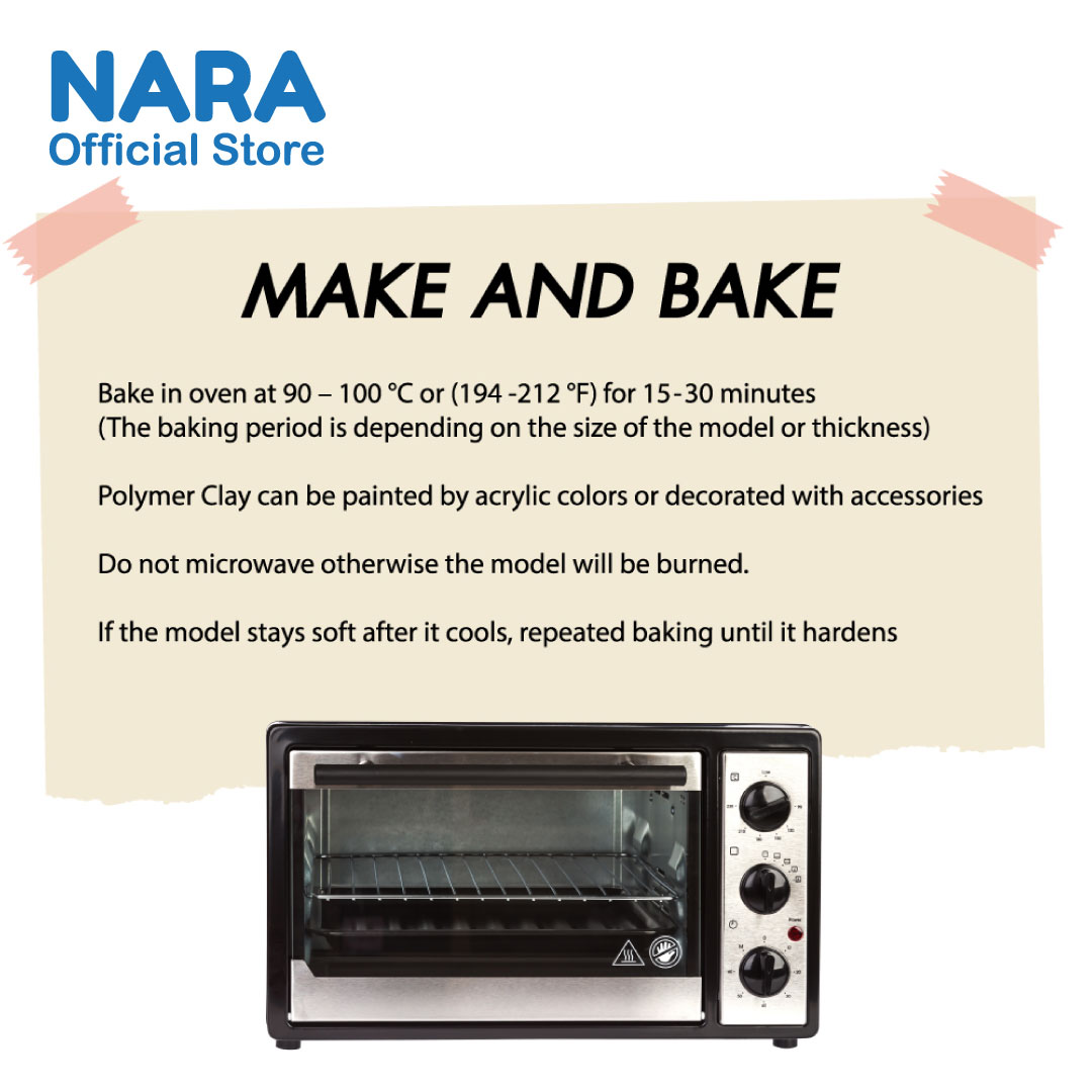 The "make and bake" clay hardens after baking it in an oven about 15-30 minutes (depending on the size of the project) at 130*C (265*F).